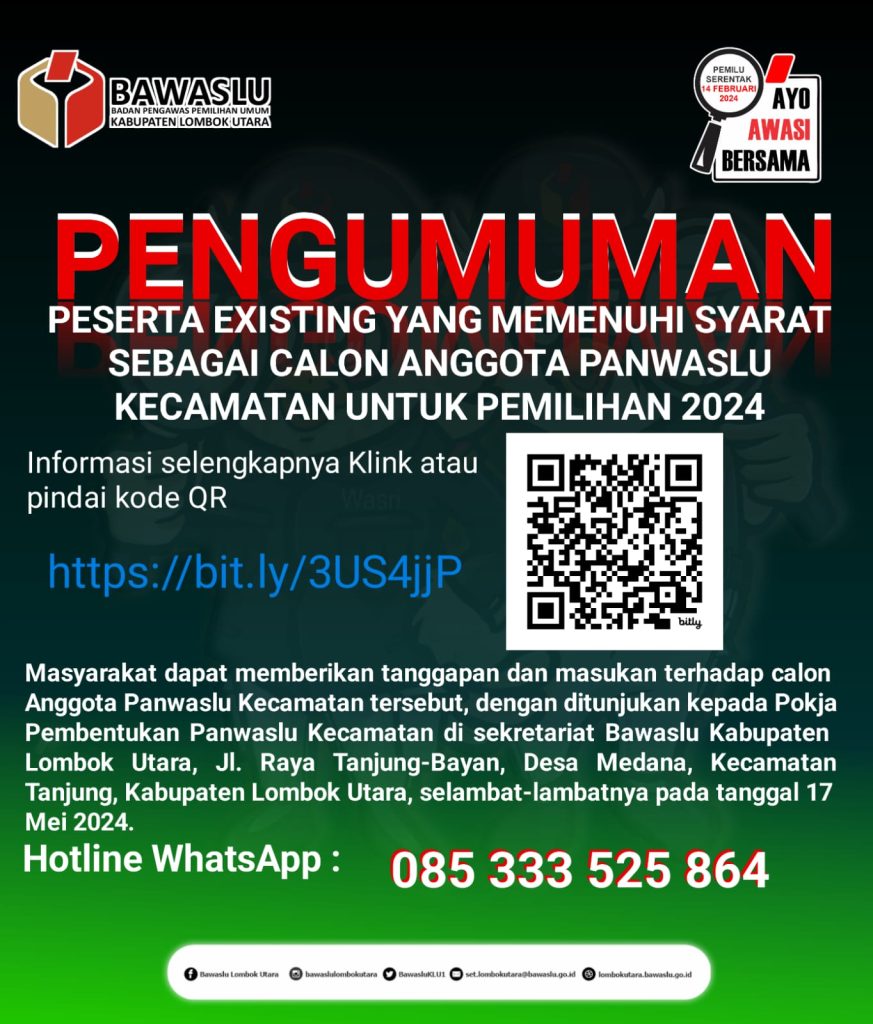 Pengumuman Peserta Existing Yang Memenuhi Syarat Calon Anggota Panwaslu Kecamatan Di Lombok Utara